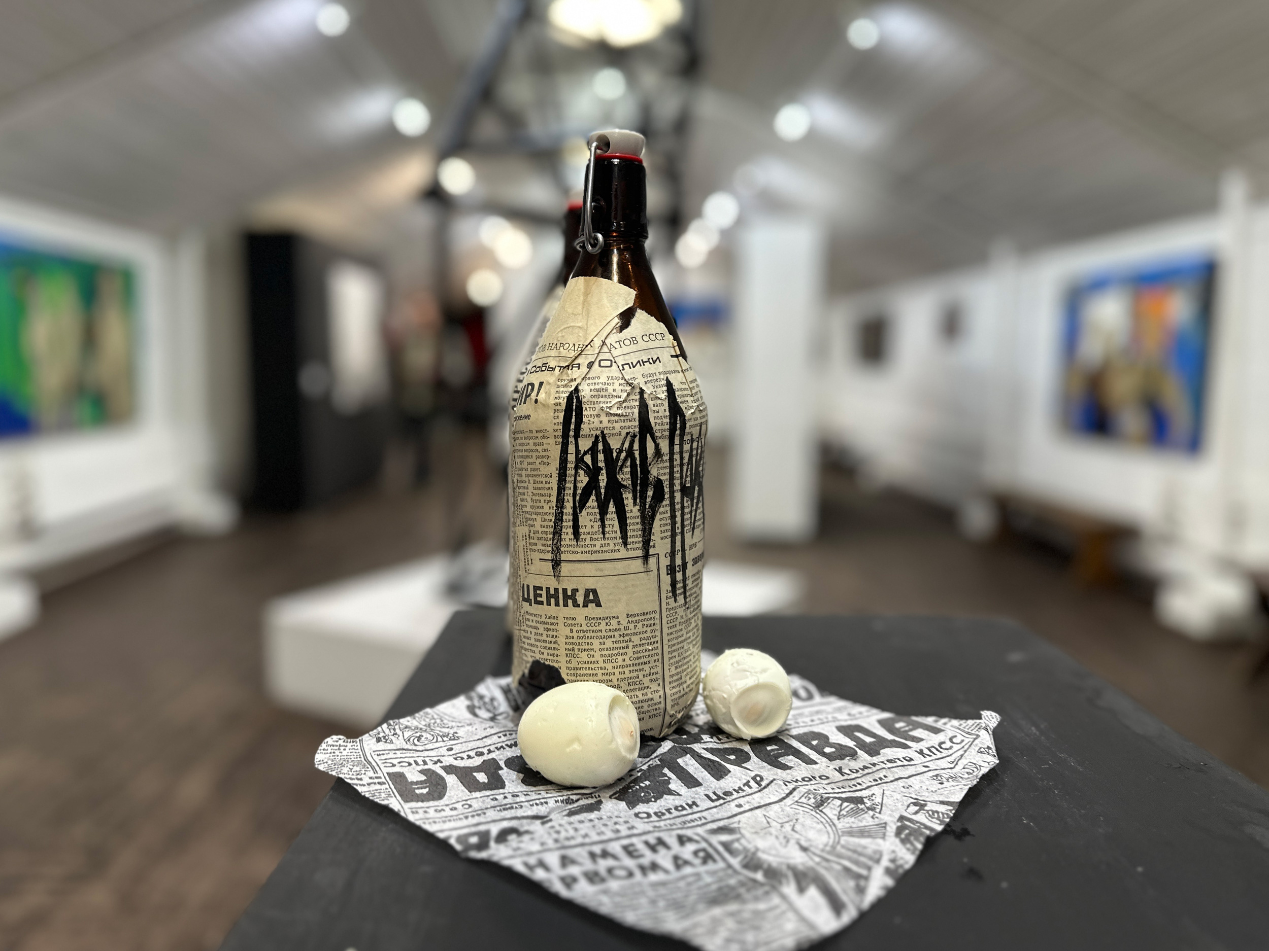 Через тактильный контакт с подлинными рваными газетными обрывками Ляхов создает пространство для личного осмысления непрерывного диалога между информацией, властью и обществом.