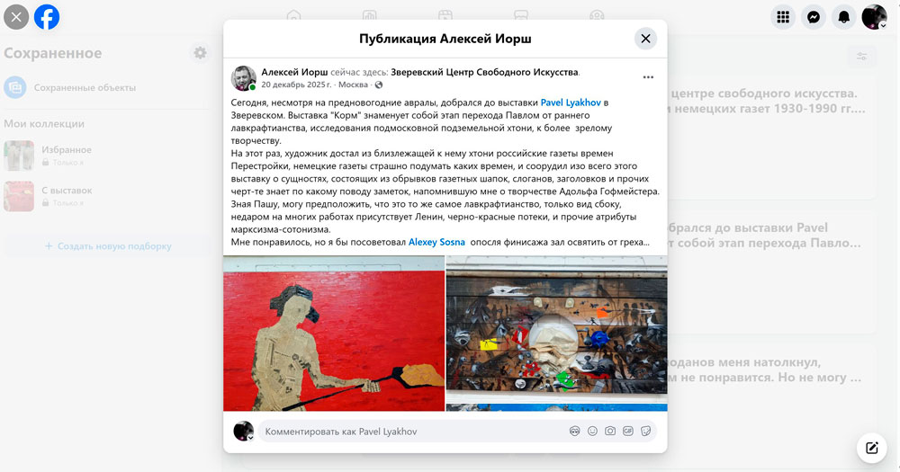 Сегодня, несмотря на предновогодние авралы, добрался до выставки Pavel Lyakhov в Зверевском. Выставка "Корм" знаменует собой этап перехода Павлом от раннего лавкрафтианства, исследования подмосковной подземельной хтони, к более зрелому творчеству.