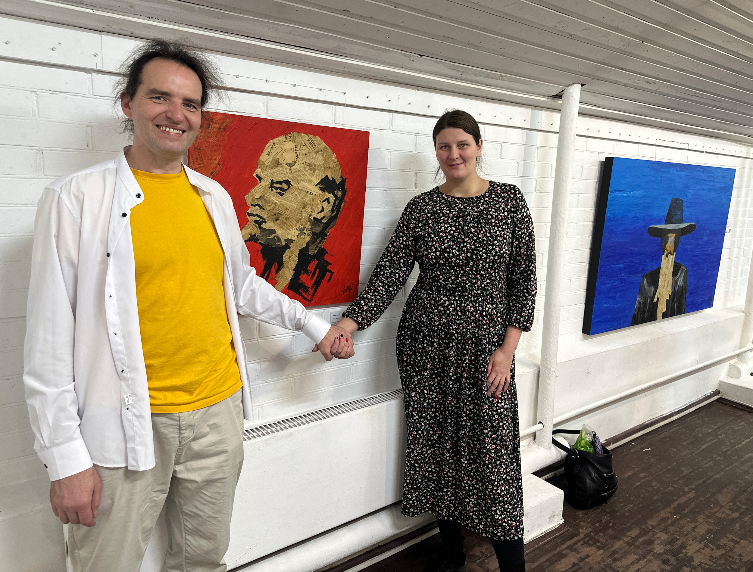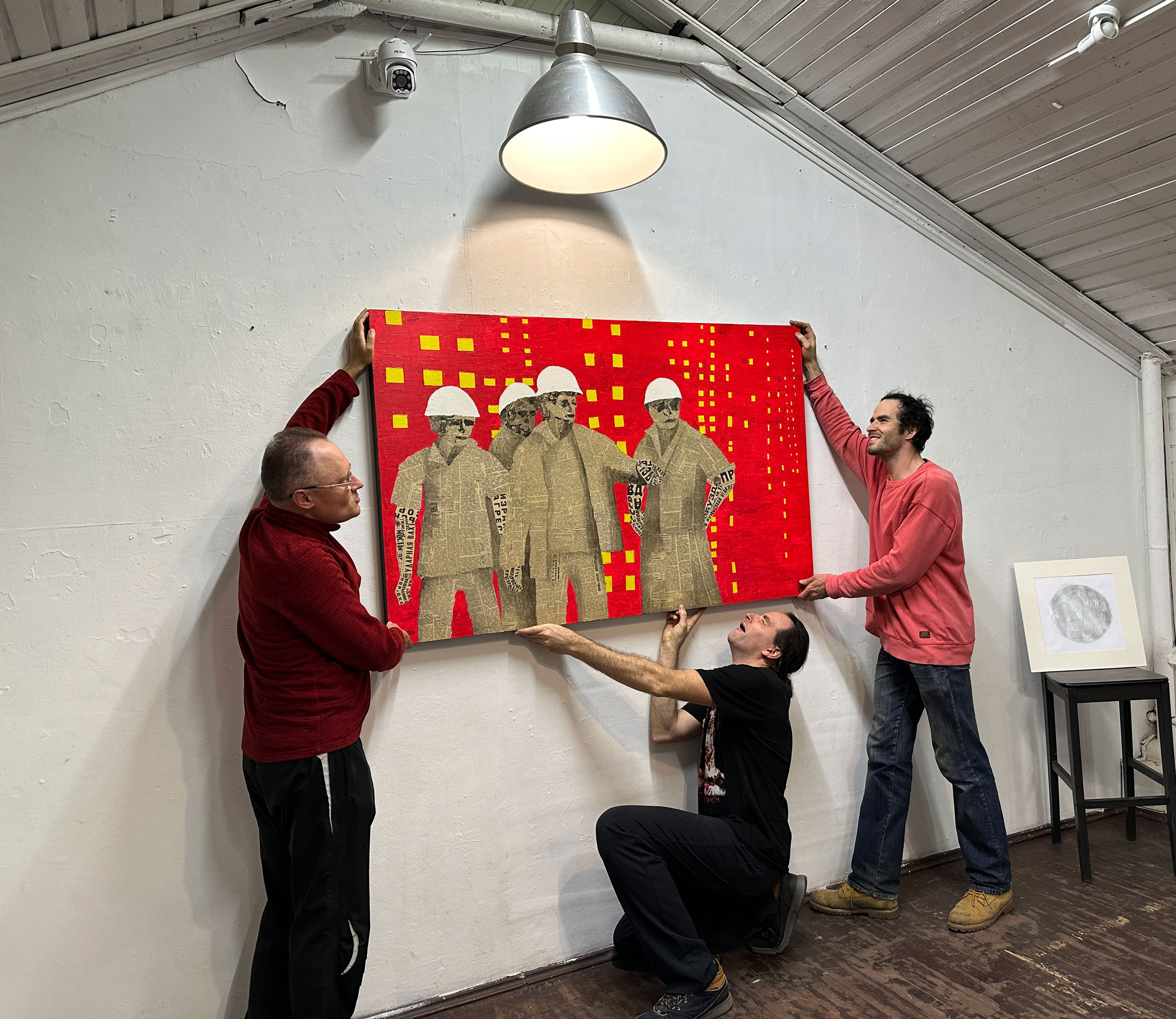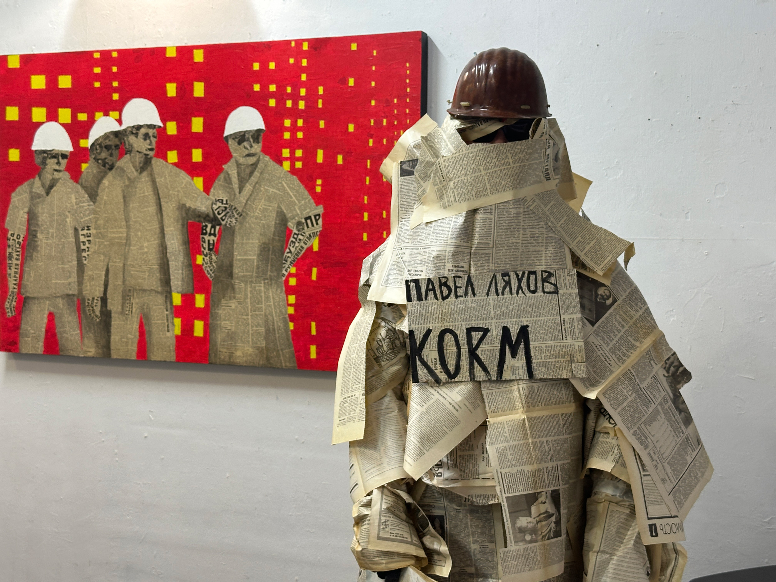 В работах Ляхова технология ручной аппликации обретает концептуальное звучание. Фанера как основа и рваные газетные фрагменты — это не только эстетический выбор, но и метафора хрупкости исторической памяти.