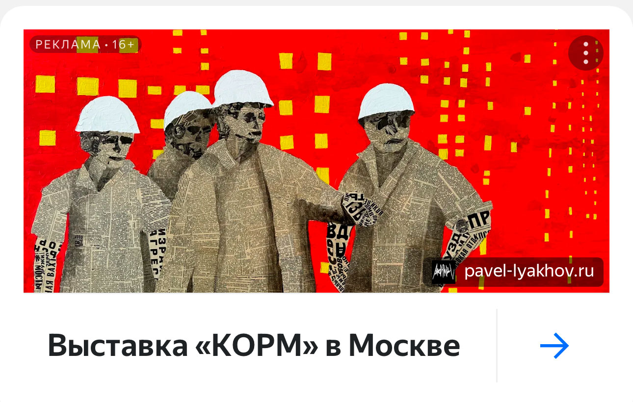 КОРМ 9-19 - XII. 2025 ПАВЕЛ ЛЯХОВ «Корм» это художественное исследование хрупкости памяти. Художник Павел Ляхов работает с подлинными газетами ХХ века, создавая из них картины-аппликации. Через столкновение прошлого и настоящего проект задает вопросы о том, как история становится "кормом для наших сегодняшних идеалов и страхов".