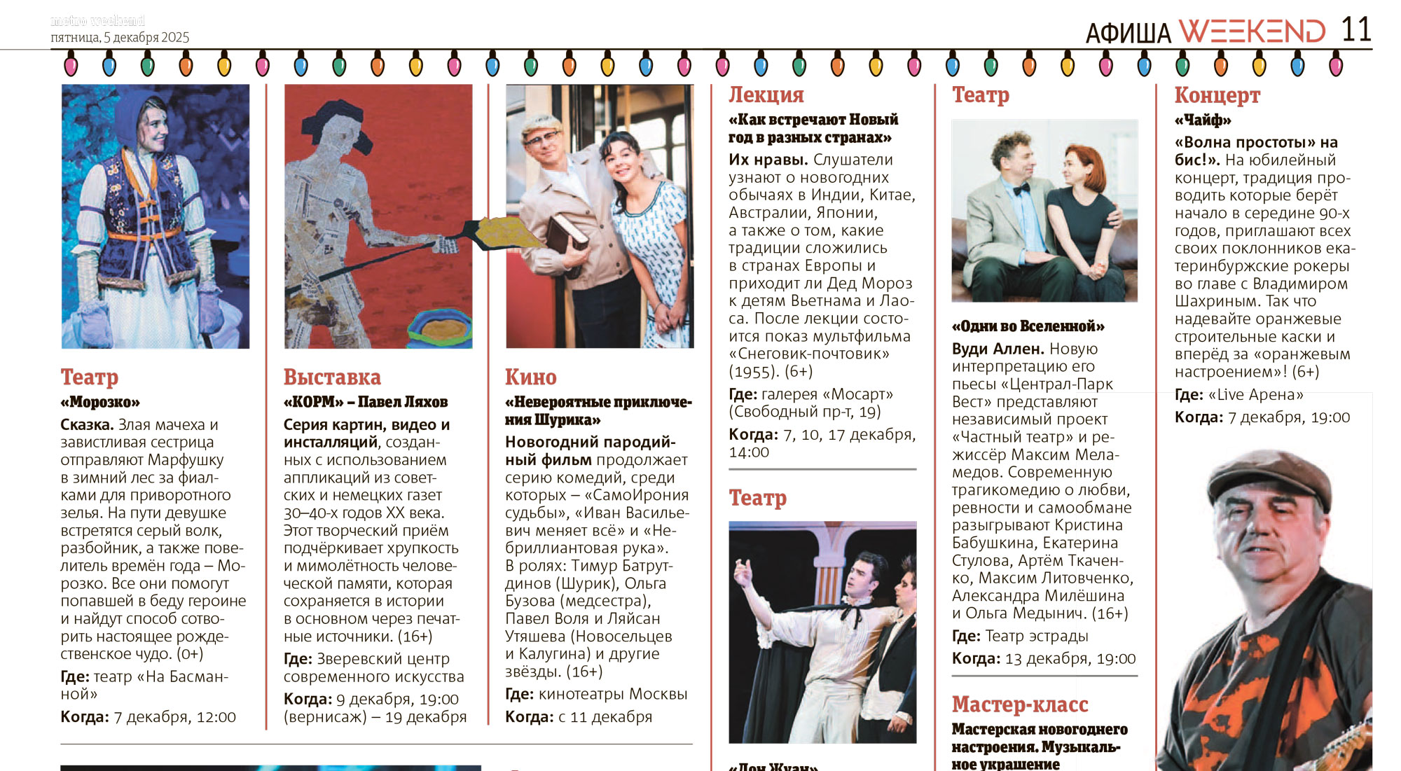ГАЗЕТА METRO МОСКВА пятница, 5 декабря 2025 № 78 (230/5769) Столичная утренняя газета. Афиша Москвы: покататься на льду в образе Буратино и отправиться на Comic Con